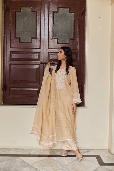 Pista Green Mul Chanderi Chikankari Kurta Set