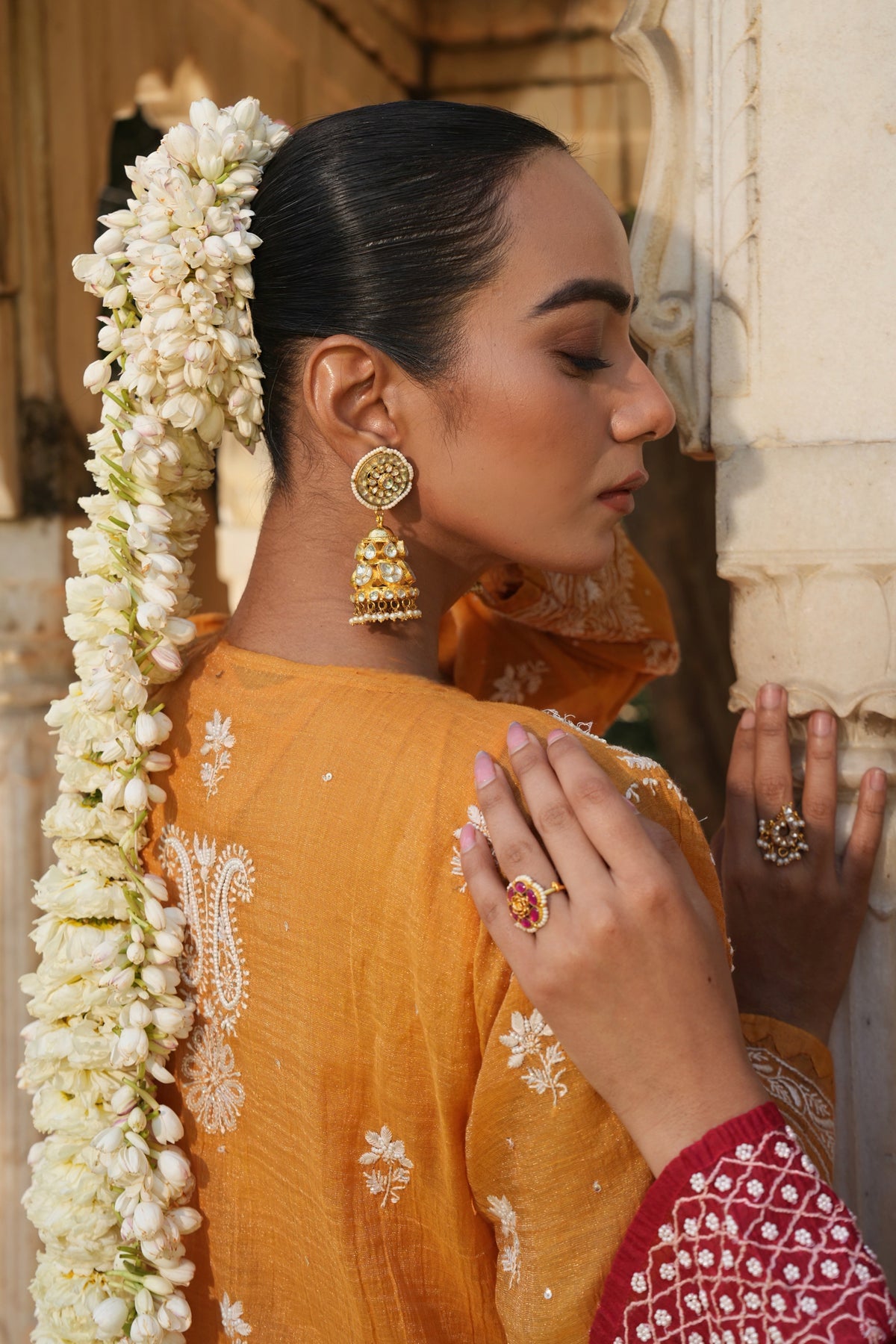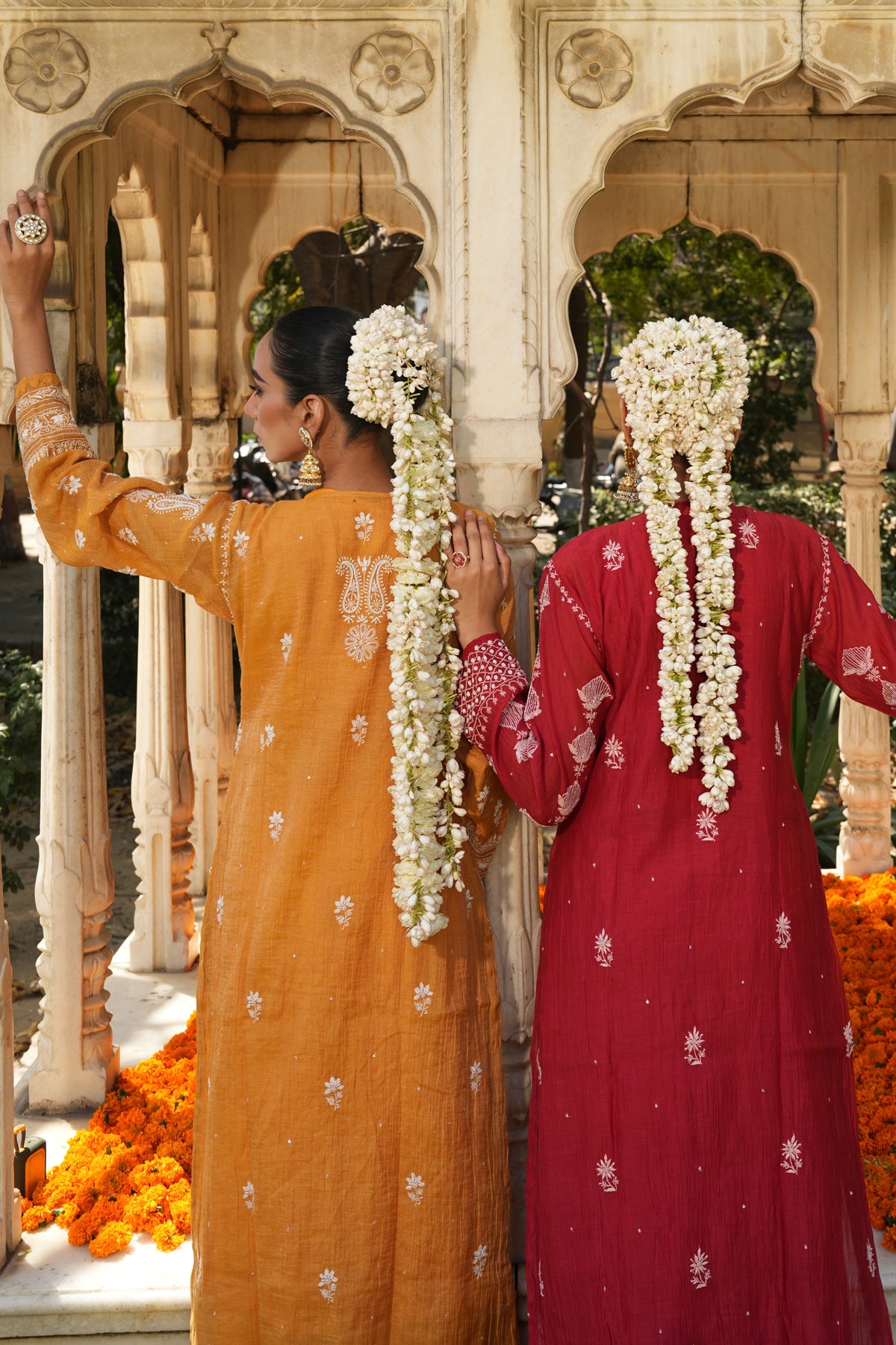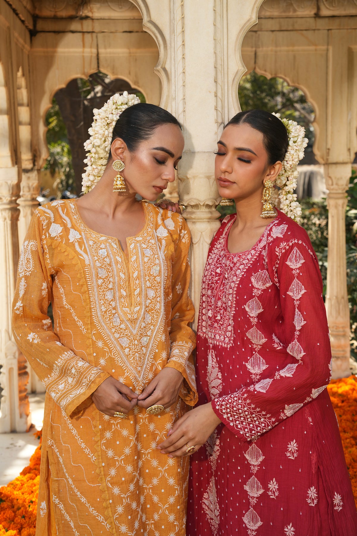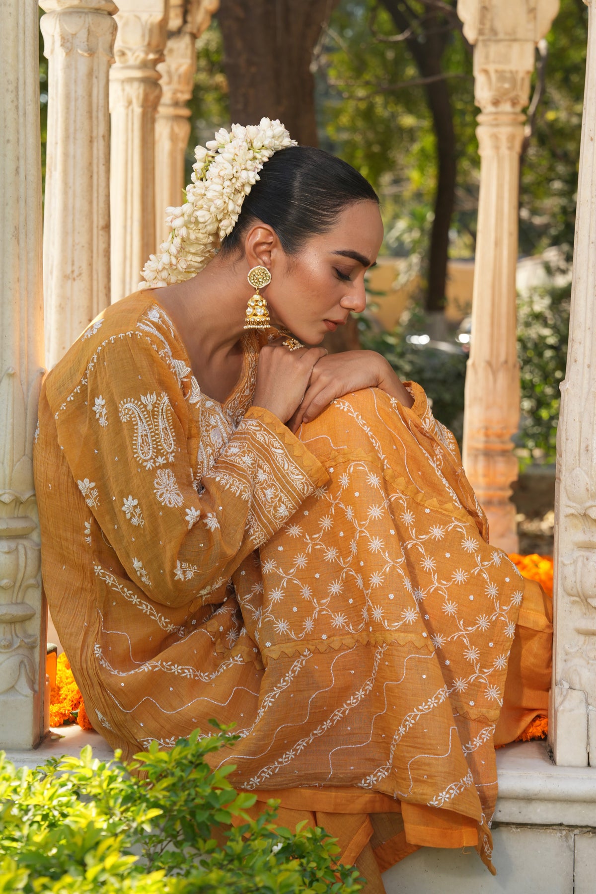 Radiate effortless elegance in our Orange Tissue Kurta Set, a stunning blend of sheer sophistication and traditional flair. Crafted in lightweight tissue fabric, the set features a lustrous finish and subtle shimmer that makes it perfect for festive occasions. Whether you're attending a day function or a celebratory dinner, this kurta set brings the perfect pop of color and style to your wardrobe.