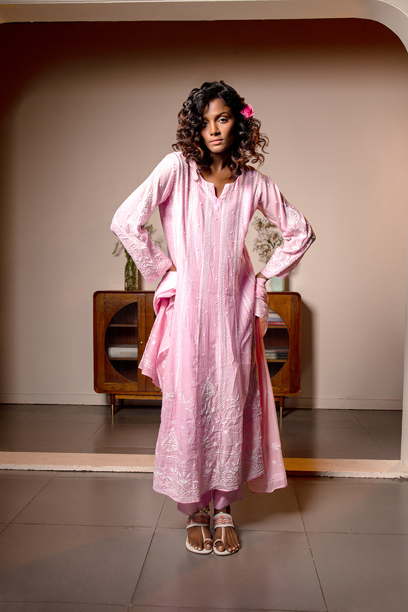 The intricate art of chikankari is the work of embroidery done by hand.