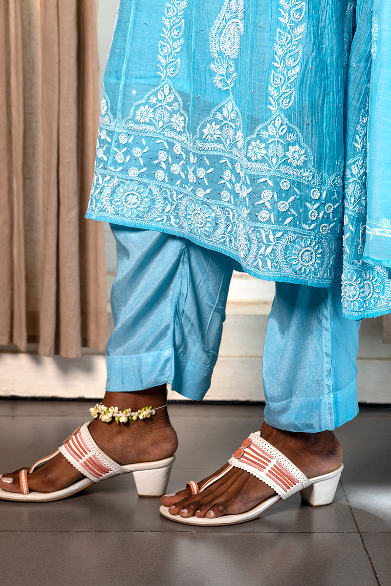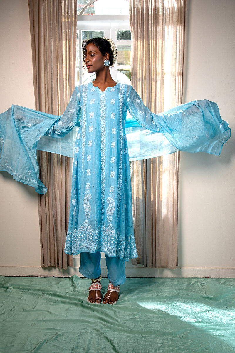 The fabric itself is delicate, as the work of chikankari embroidery is done on fine fabric. It has been compared to the "iridescent wings of a dragonfly.