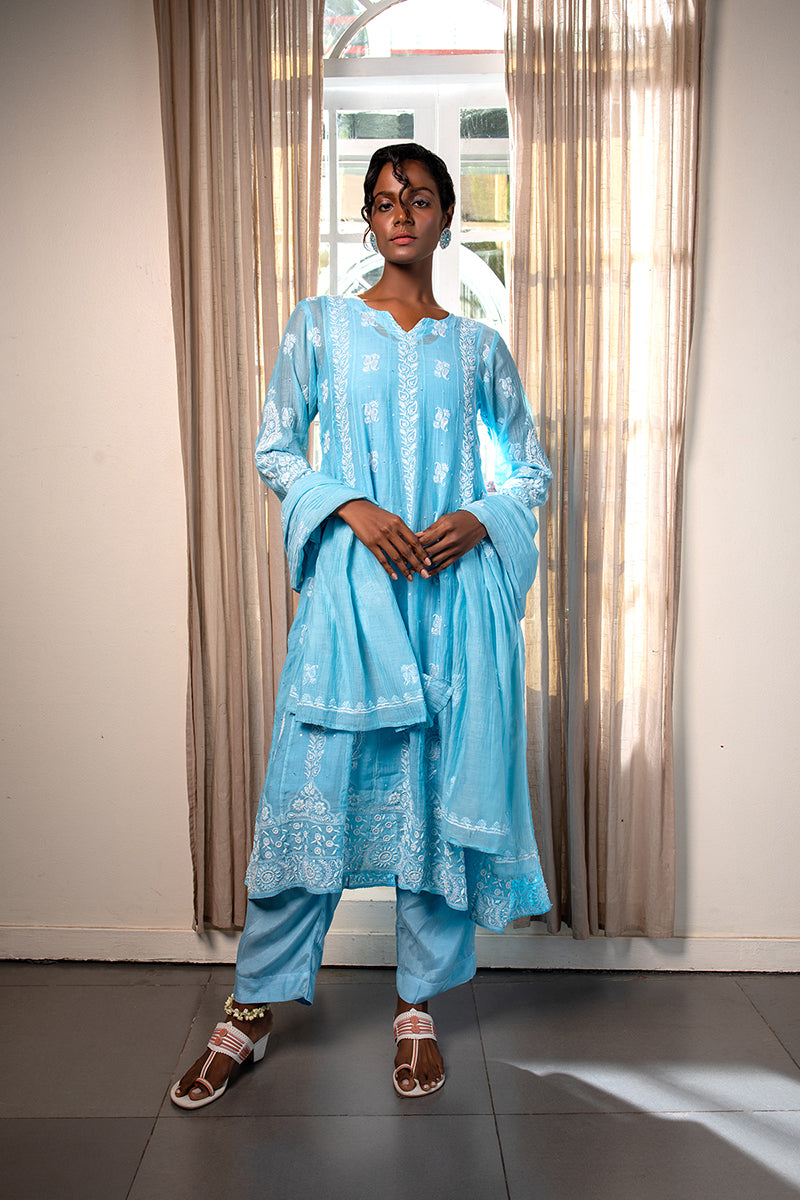 The intricate art of chikankari is the work of embroidery done by hand.