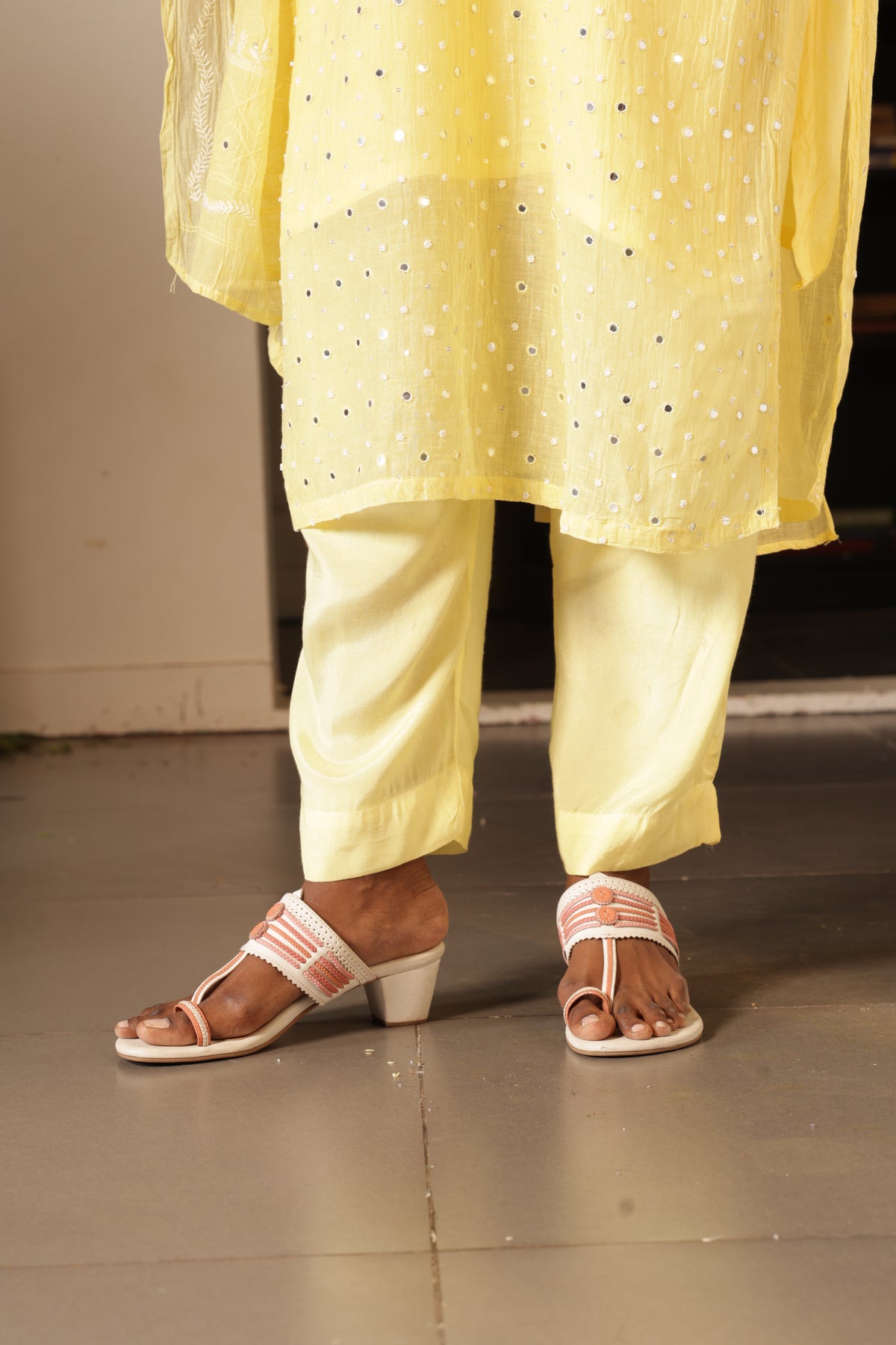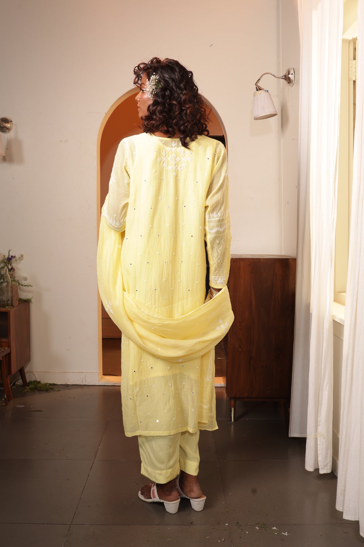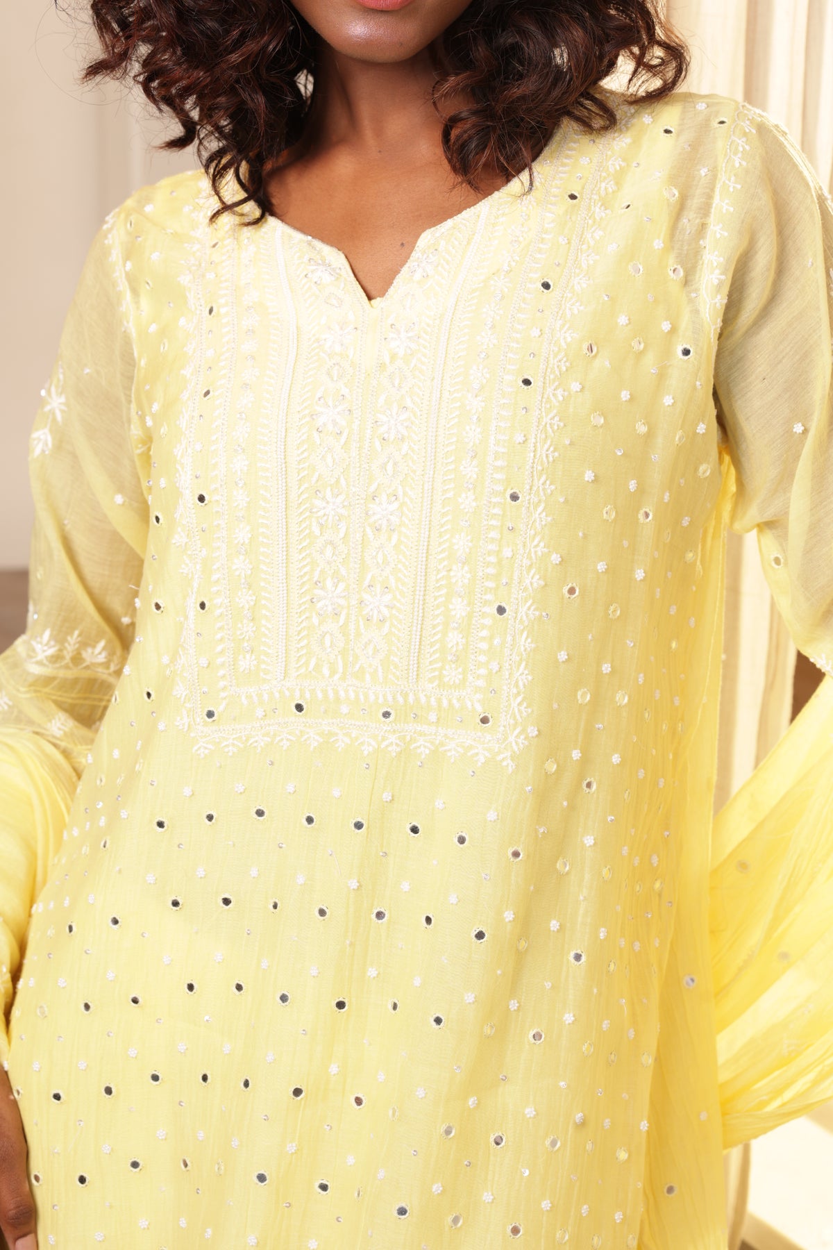 Bright yet graceful, our Noor Mirror Yellow Mul Chanderi Kurta Set is crafted in soft, breathable mul chanderi that feels light and effortless.