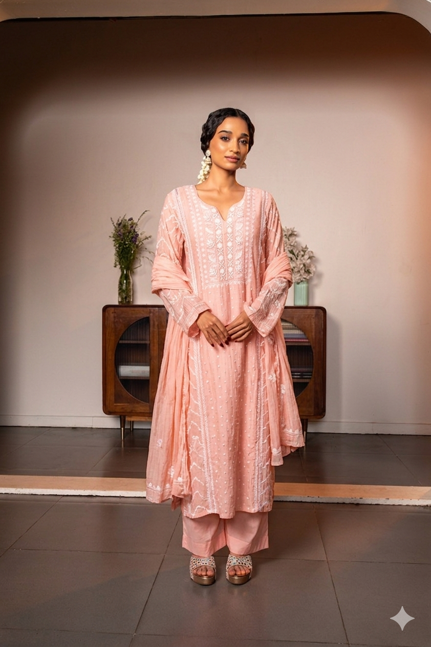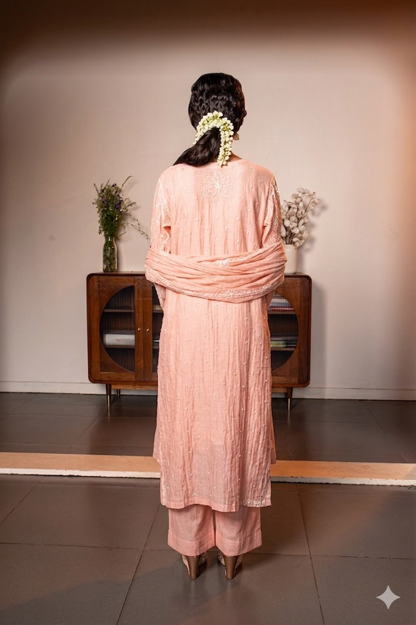 The fabric itself is delicate, as the work of chikankari embroidery is done on fine fabric. It has been compared to the "iridescent wings of a dragonfly.