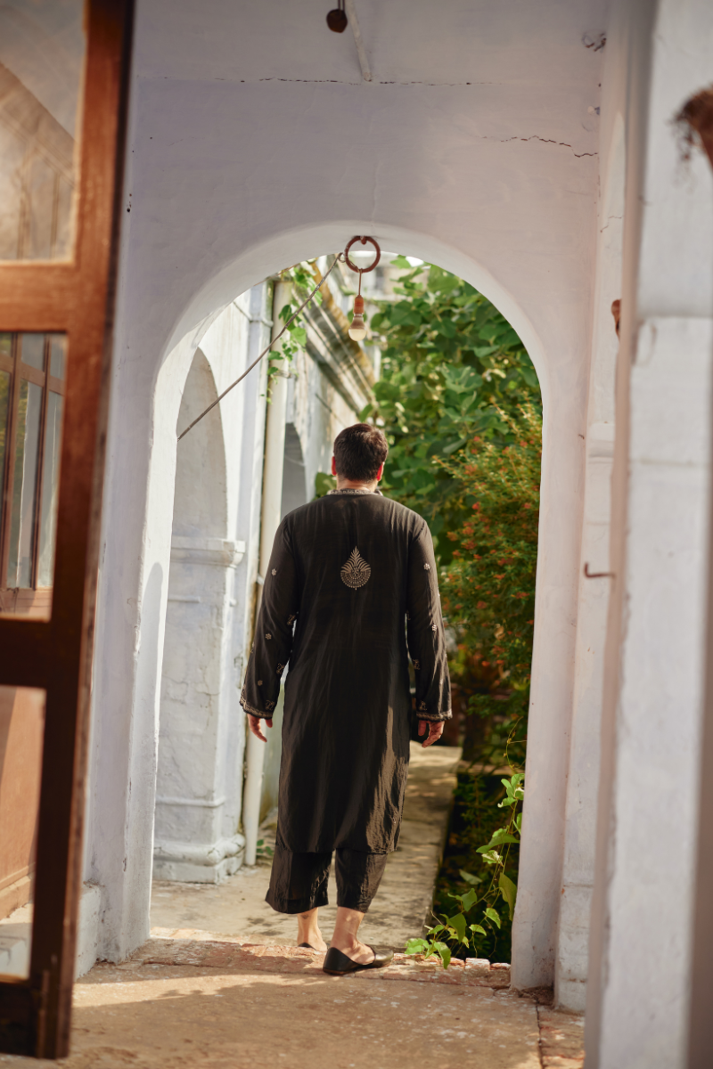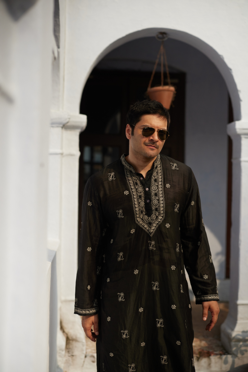 Step into refined tradition with our Chikankari Men’s Kurta, meticulously hand-embroidered with delicate jhaali work that showcases the true artistry of Lucknowi craftsmanship. Every motif is crafted with precision, forming a stunning mesh of fine threadwork that adds depth, texture, and timeless elegance.