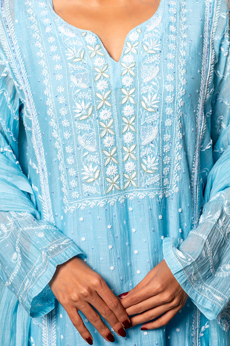 The intricate art of chikankari is the work of embroidery done by hand.